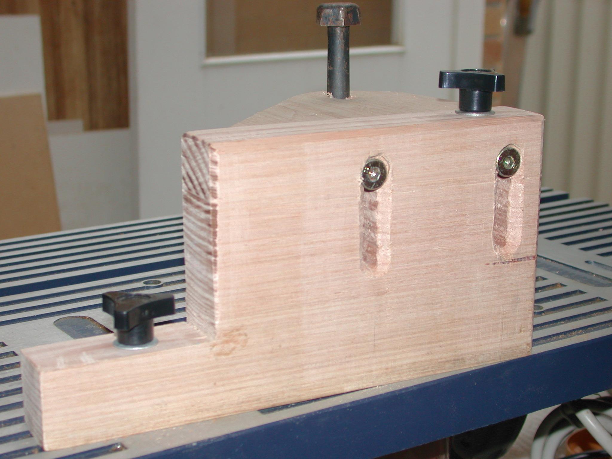 | You can see the adjustment slots. I use a 5mm Allen key to loosen these big screws to adjust the height. The screws have been ground on the inner side of the head to remove the anti-slip features. They're also lubricated with a bit of grease, which should make the threads last longer. I'm sure there are better ways to do this, but it works and I don't expect to use it all the time anyhow. | |