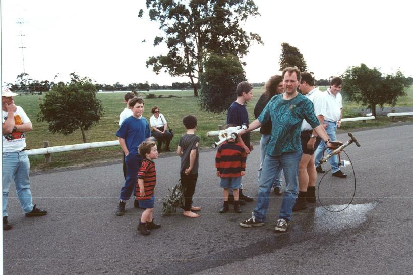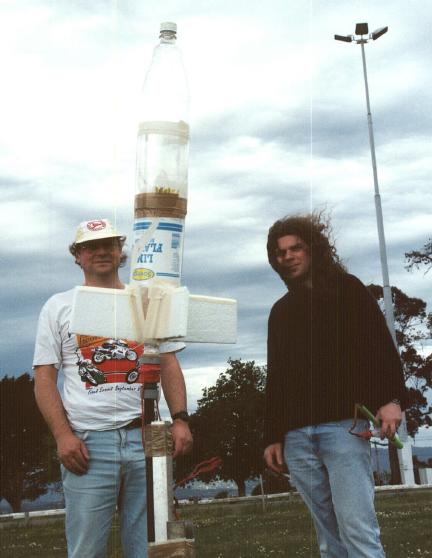 Bruce and Ian with Bruce's launcher and rocket